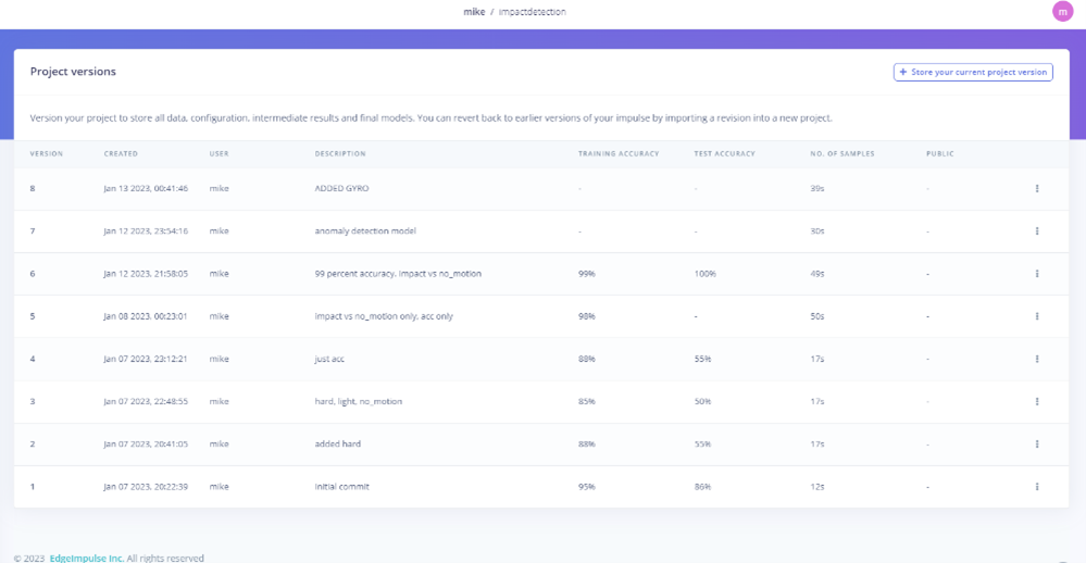 For designers, developing ML models requires configuration management that is adaptable and efficiently integrates as requirements change. Recognizing these needs, Edge Impulse has incorporated features that enable effective model versioning: