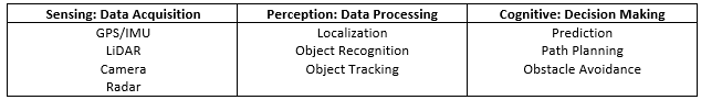 Table 1: The higher-order steps of information gathering and decision making in higher autonomy levels. (Source: Mouser Electronics)